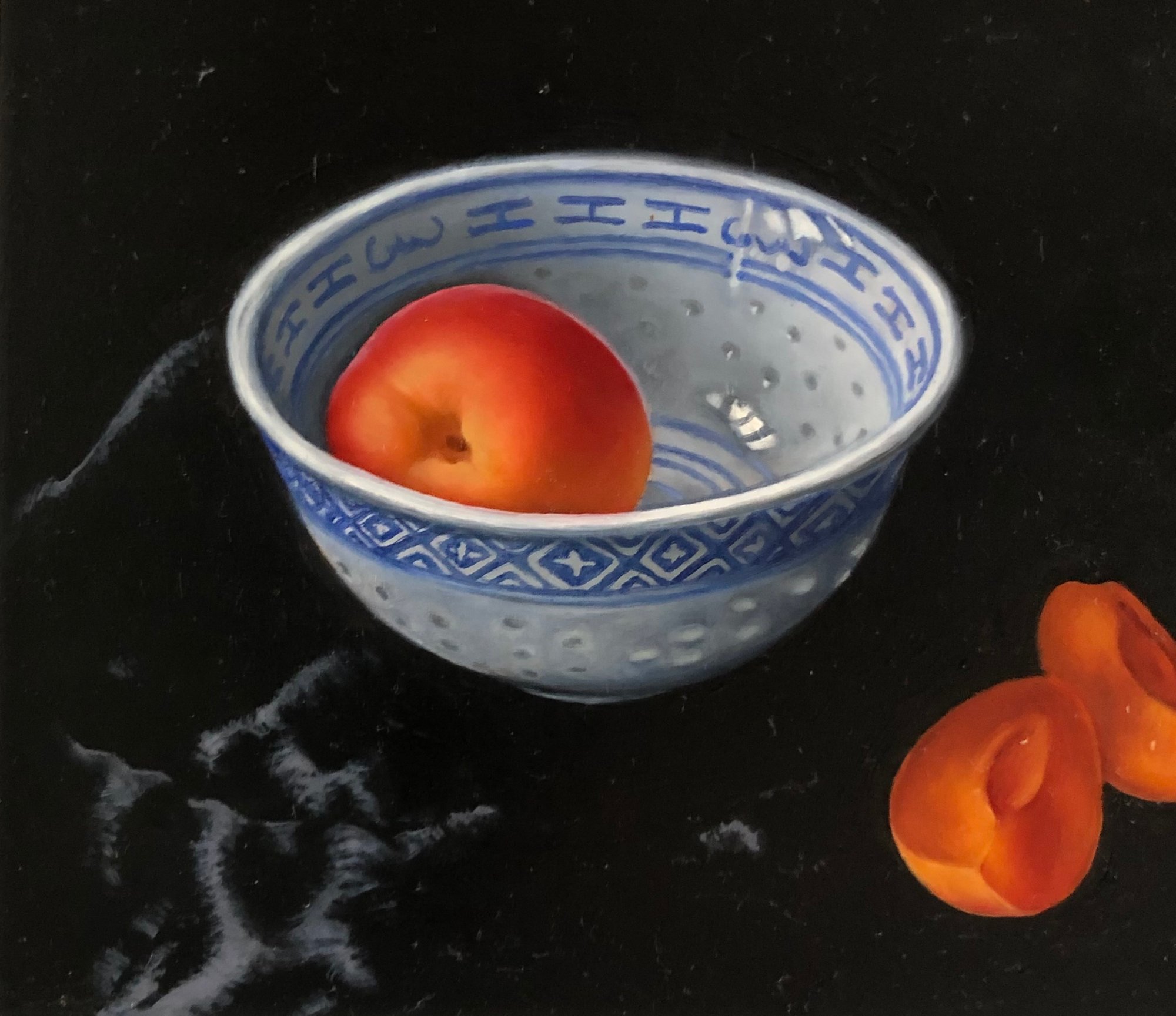 Apricots & Bowl on Black Velvet