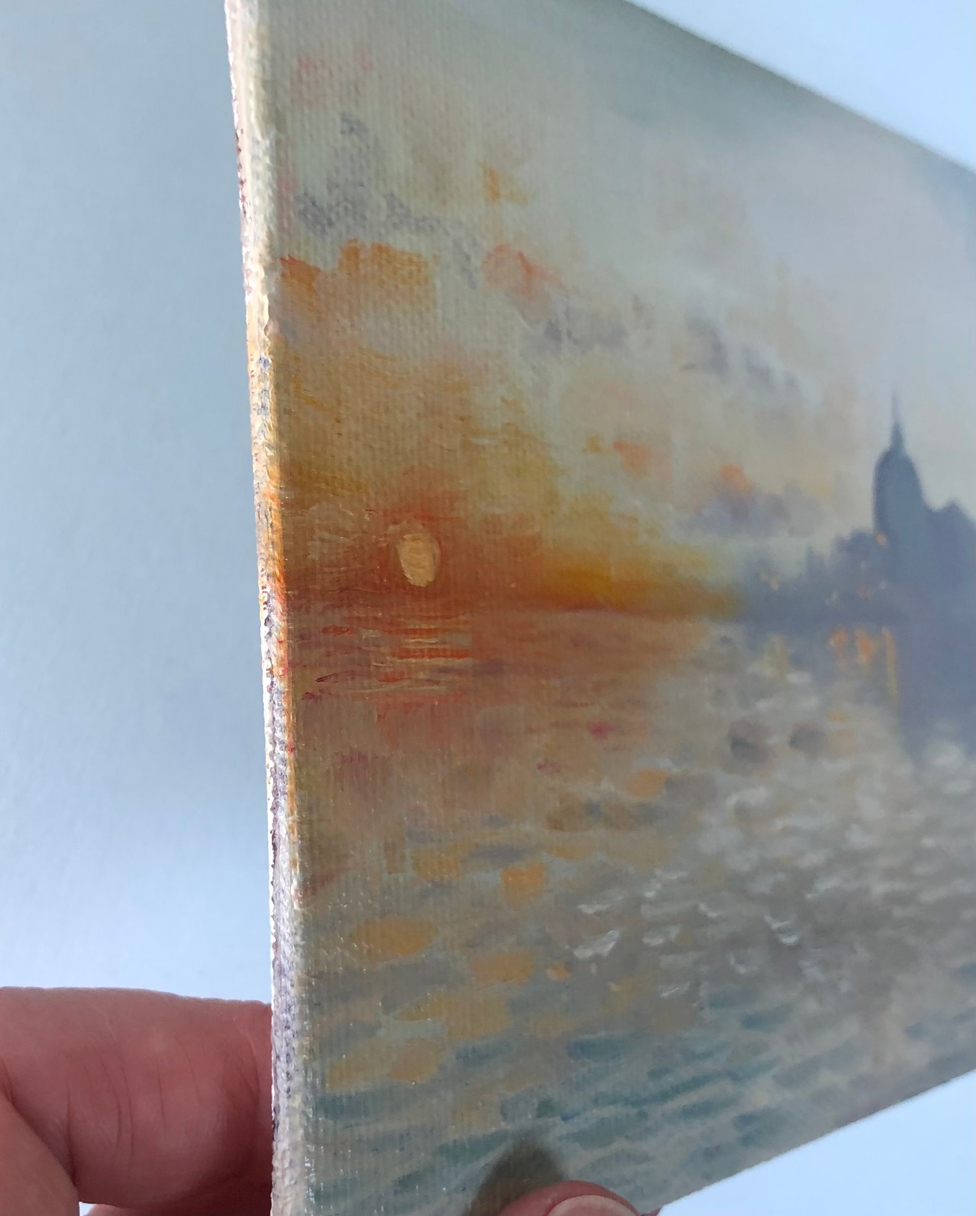 5x7” oil on canvas board. Unframed, unpainted sides- see photos.